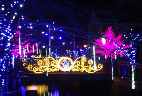 太田イルミネーション会場で、八瀬川イルミネーションのチラシを貰った。そのチラシが少し変わっていて滴がガラス棒を伝わって流れ落ちる様に輝いて画像だった。