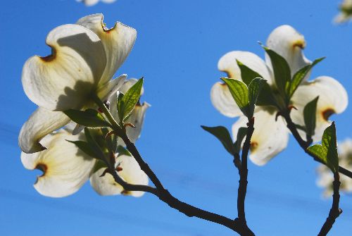 さらに、コントラストを強調して逆光で、パチリ。見えていたのは、コントラストの強い花水木の花のイメージだった。そこに隠れていた緑のれんぎょうのイメージに気付いたのは、偶然だった。