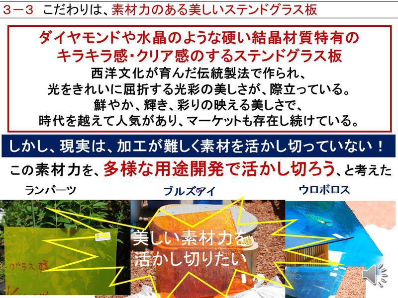 ここから、『半田付けしない、ガラス側面の美しさも見える"縁なしステンドグラス"の商品概念』が生れ、提案するに至った。